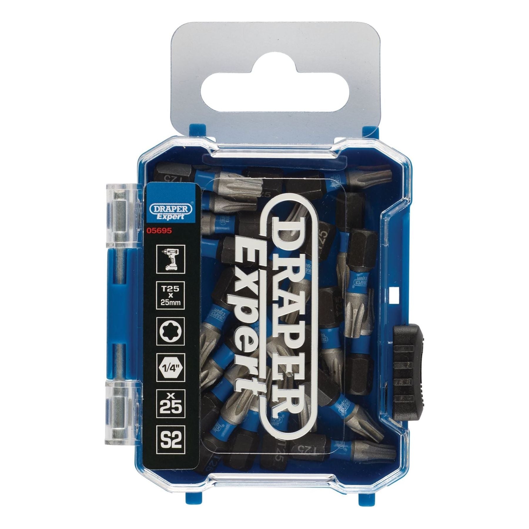 Draper Expert TX-STAR Impact Screwdriver Bits, T25 x 25mm, 1/4" Hex (Pack of 25)