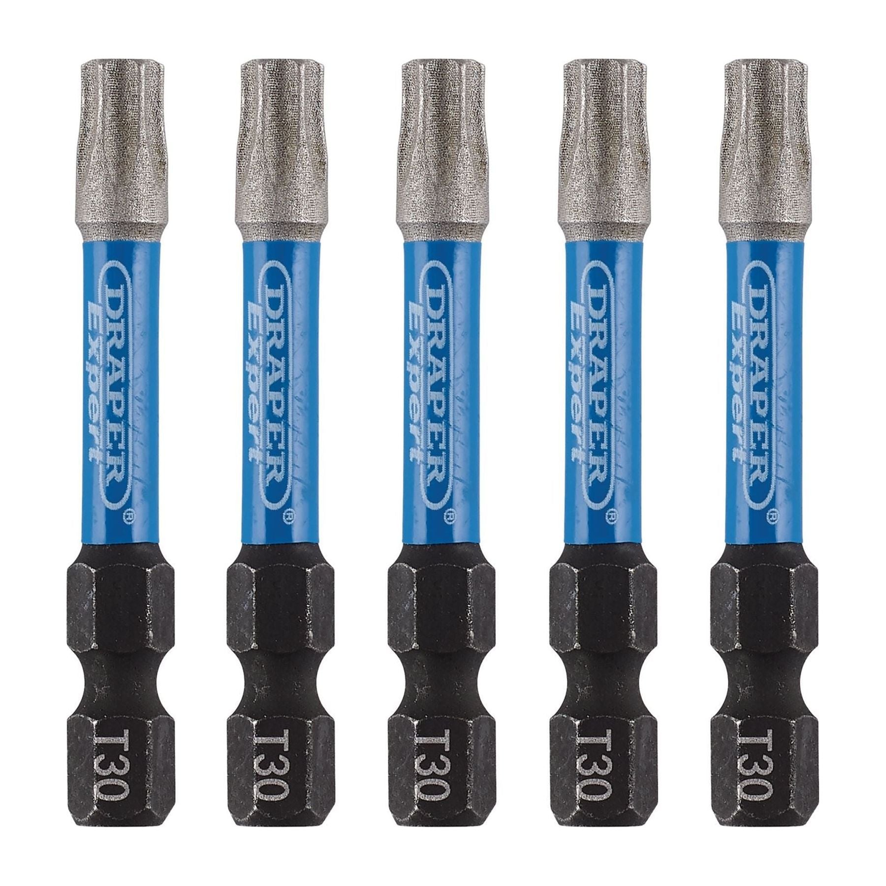 Draper Expert TX-STAR Impact Screwdriver Bits, T30 x 50mm, 1/4" Hex (Pack of 5)