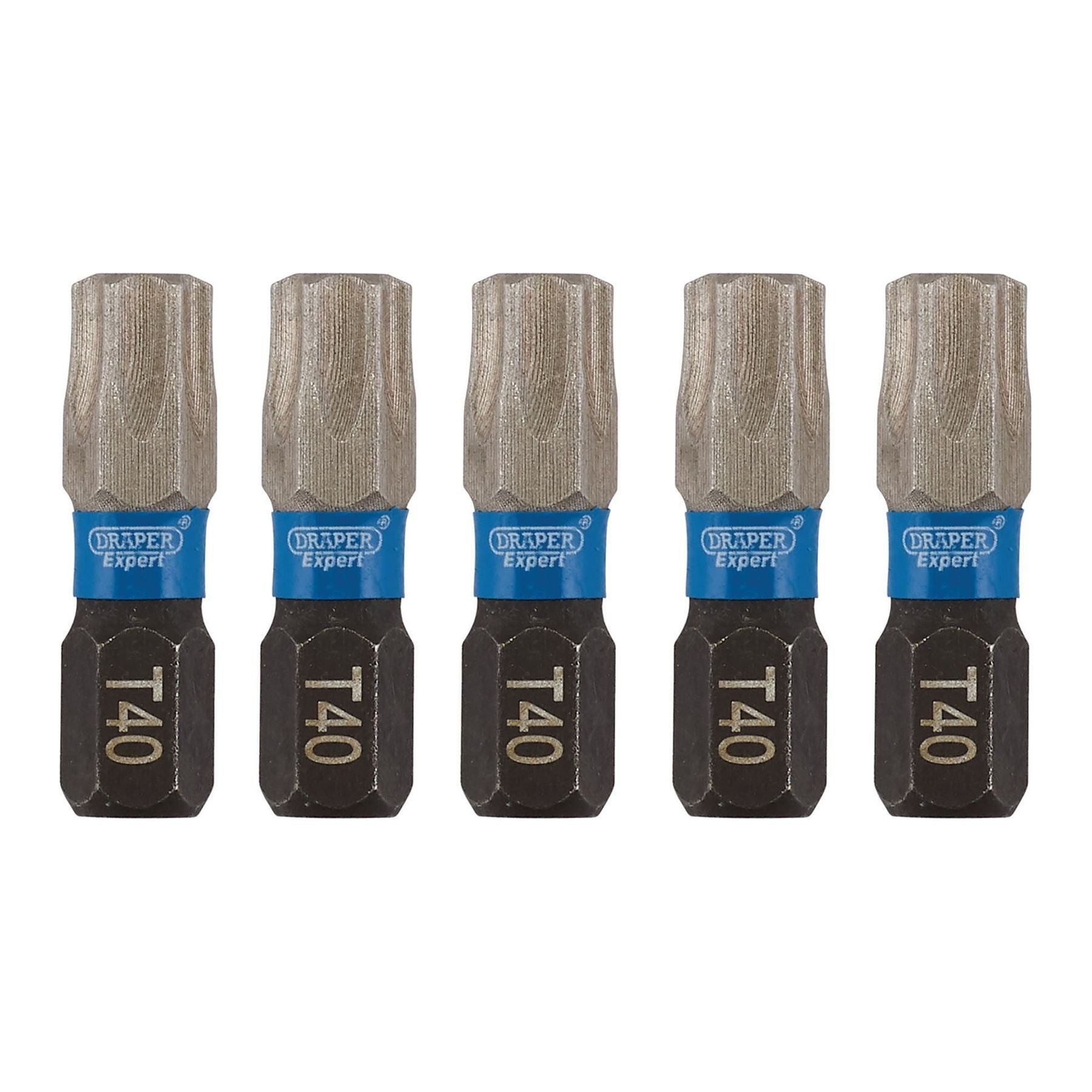 Draper Expert TX-STAR Impact Screwdriver Bits, T40 x 25mm, 1/4" Hex (Pack of 5)