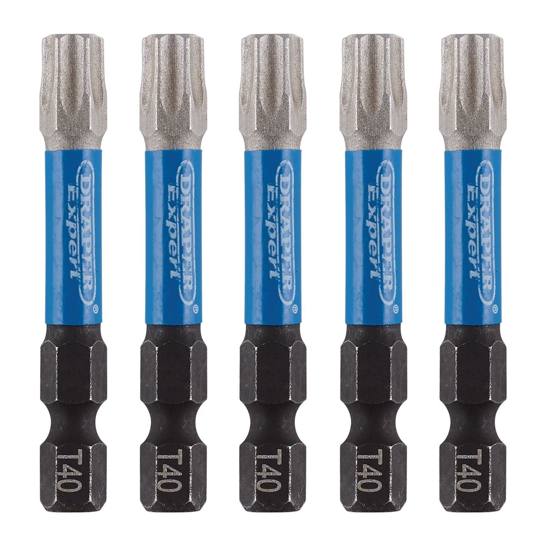 Draper Expert TX-STAR Impact Screwdriver Bits, T40 x 50mm, 1/4" Hex (Pack of 5)