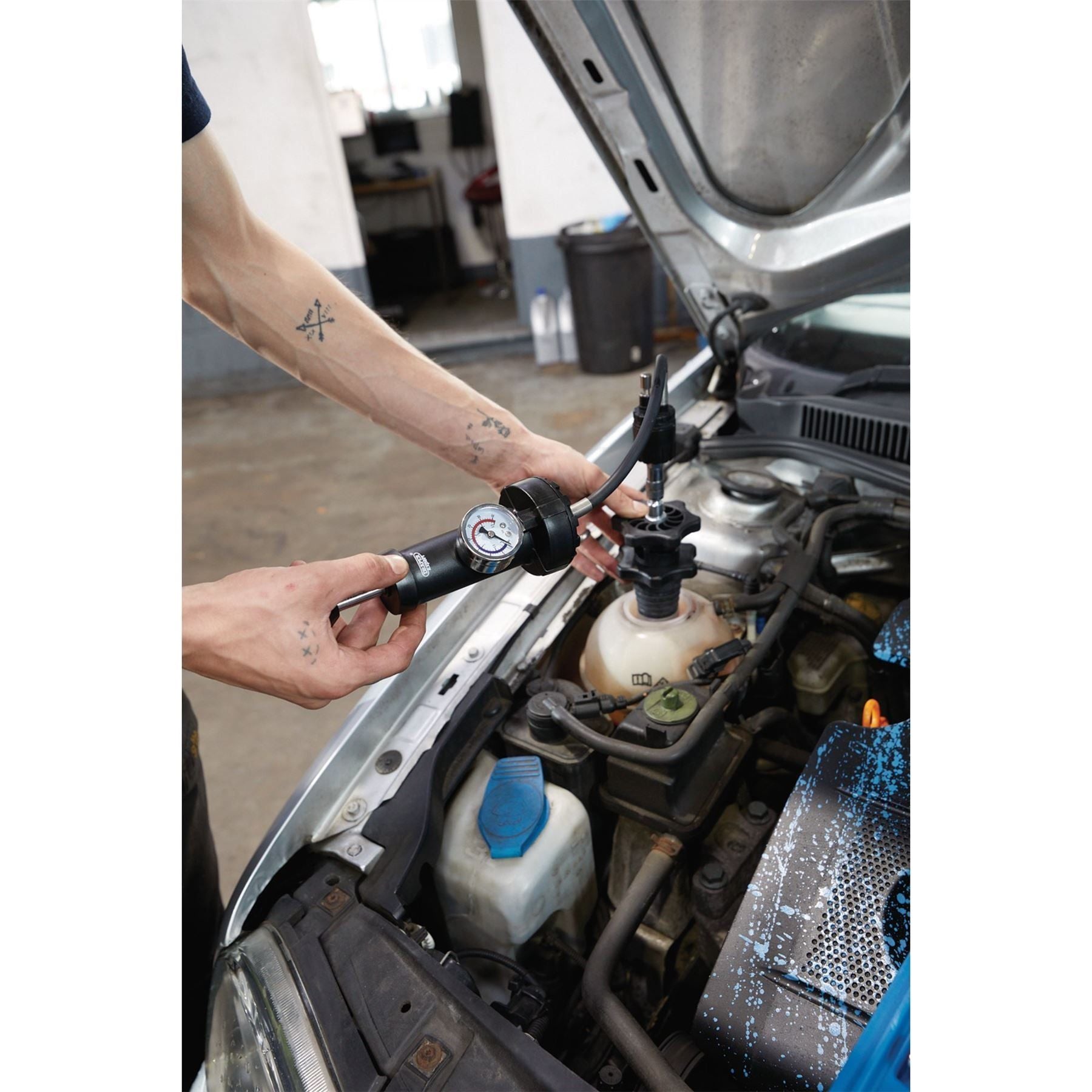 This universal pressure test kit is designed to test and measure the pressure in vehicle cooling systems via the radiator...