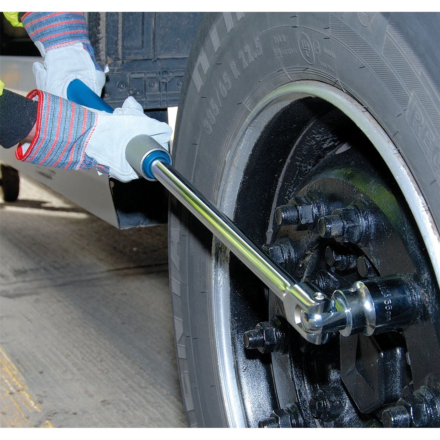 Description Expert Quality, head and shaft manufactured from chrome vanadium steel hardened, tempered and chrome finish for corrosion protection. 180° hinged joint head. Pull back collar with knurled ring allows handle to extend from 510 (minimum) to 770mm (maximum). Extending handle locks in three positions. Spring - loaded ball bearing for secure socket holding.