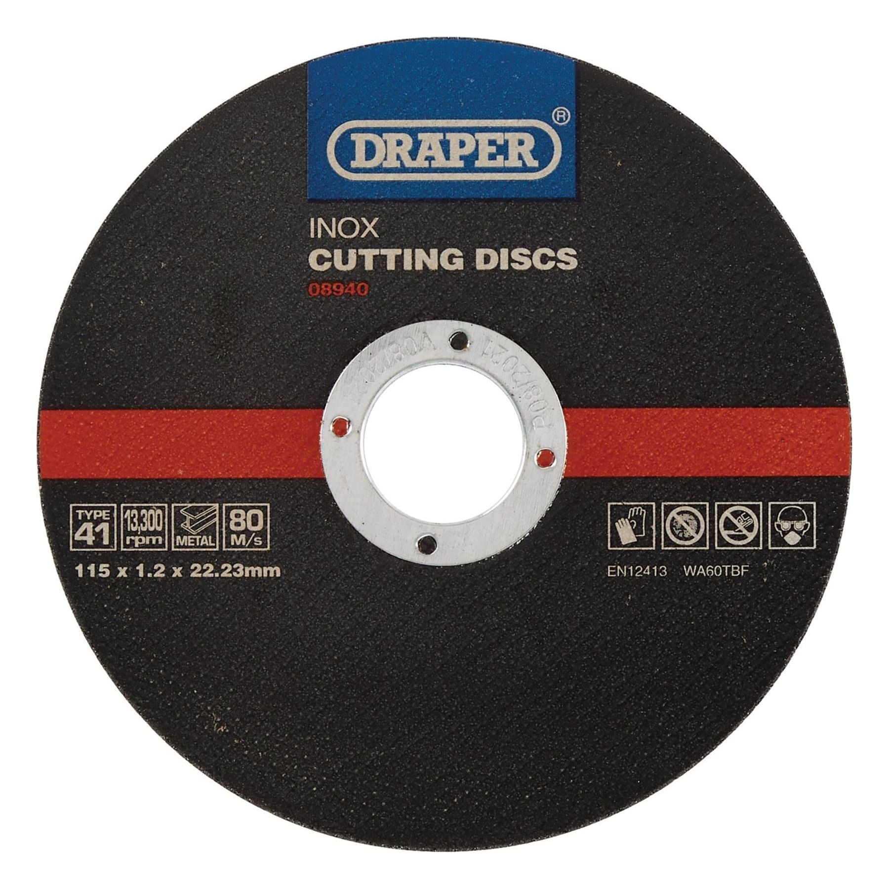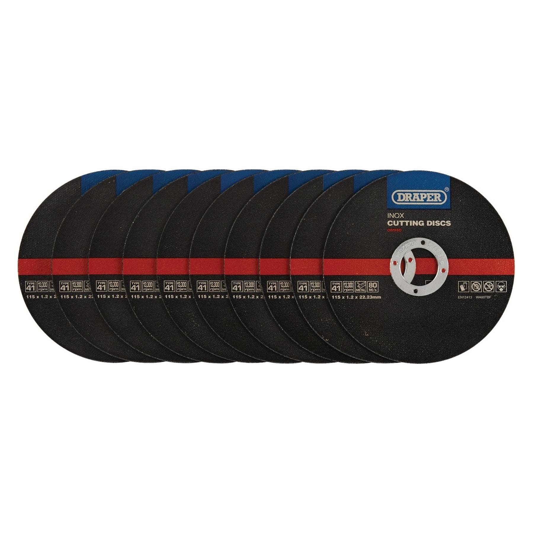 Draper Inox Flat Metal Cutting Discs, 115 x 22.2 x 1.2mm (Pack of 10) 08940