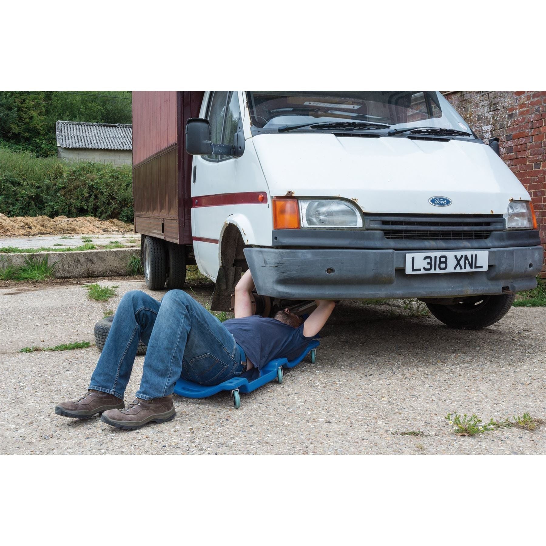 Rigid PVC construction with six multi directional castors for easy movement. Moulded back for user comfort with magnetic tool trays...