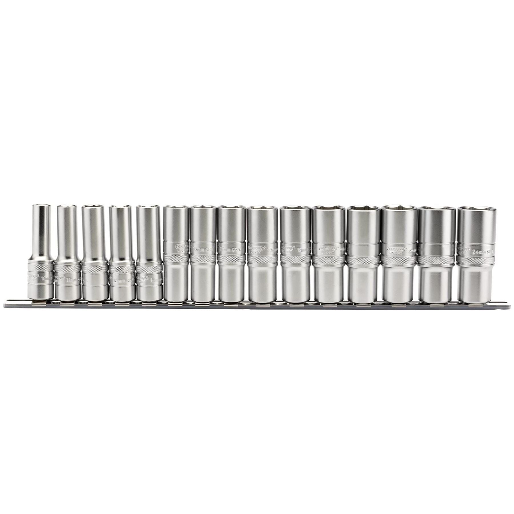 Draper Metric Deep Socket on a Metal Rail, 1/2" Sq. Dr. (15 Piece) 16499