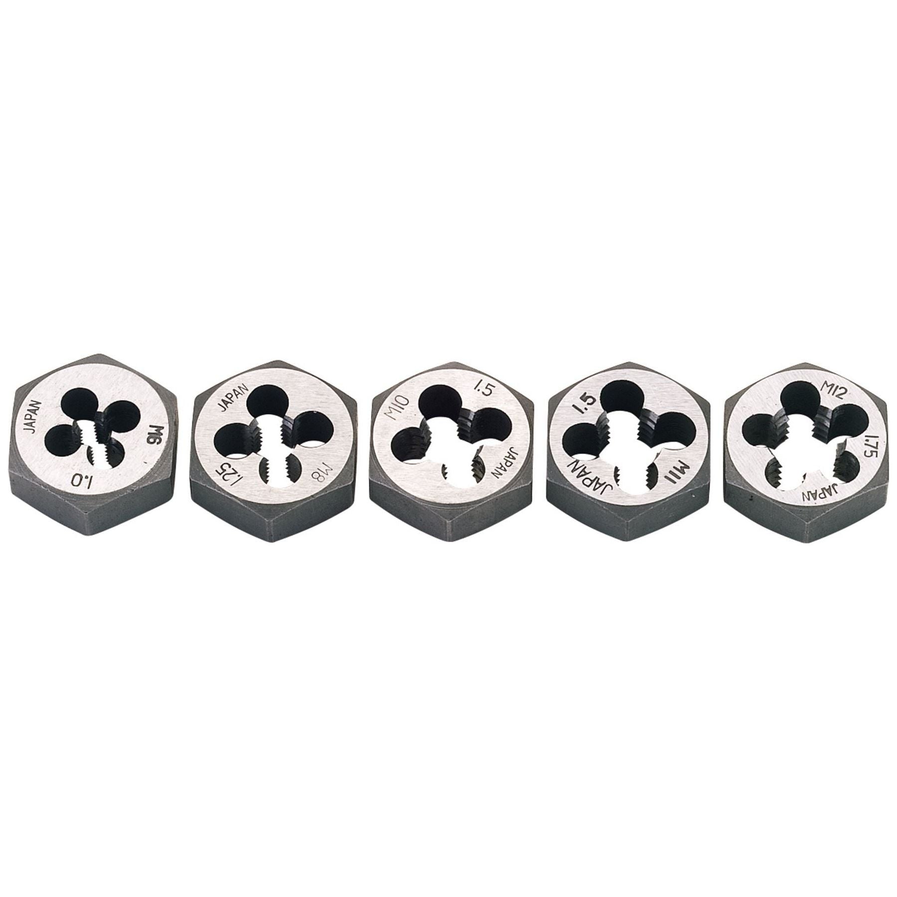 Manufactured from carbon steel. Display packed.Contents5 x Dies: 6 x 1.00, 8 x 1.25, 10 x 1.50, 11 x 1.50,...