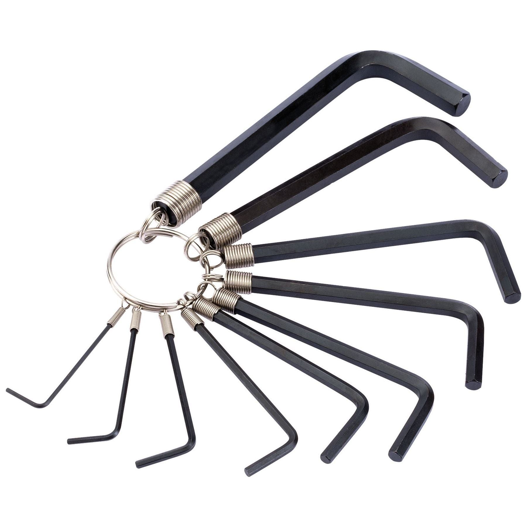Manufactured from chrome vanadium steel that's hardened and tempered. Each held on key ring holder. Display packed.Contents10 x Hex keys:...