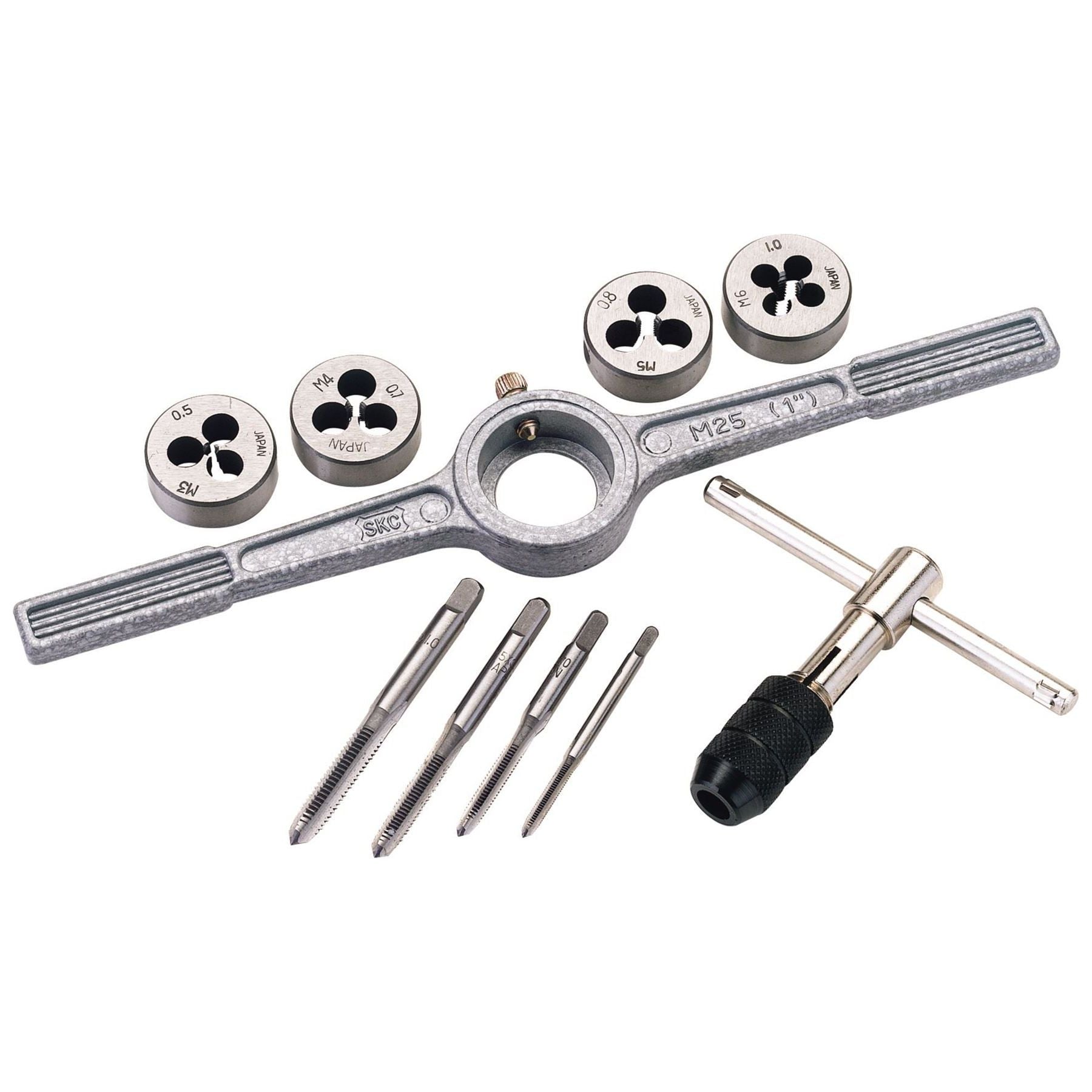 Ideal kit for re-threading. Suitable for cutting threads on mild steel and aluminium. Manufactured from high carbon steel.Contents4 x Metric...