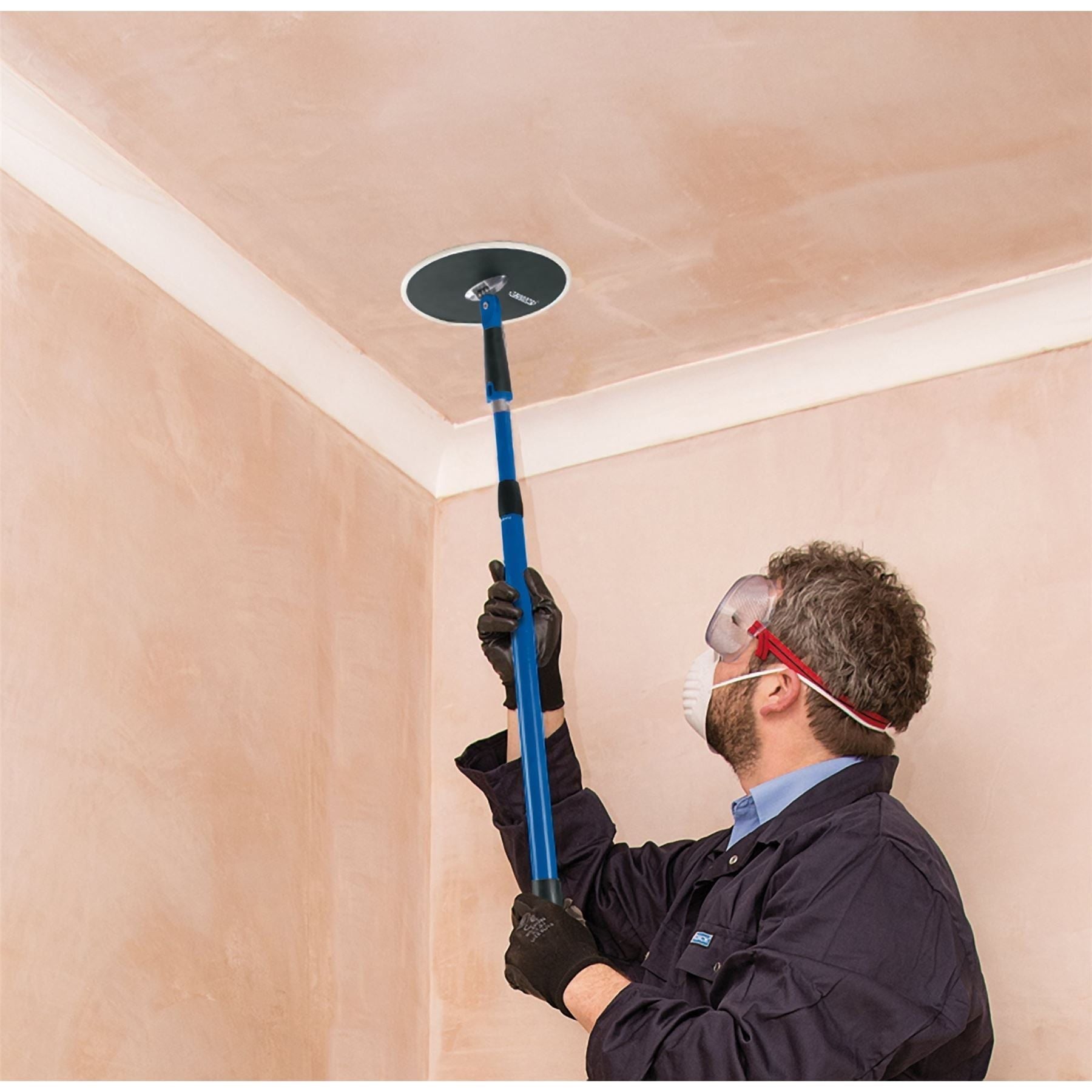 Hook and loop sander suitable for attaching 230mm sanding discs. The protective rubber bumper allows sanding right up to edges...