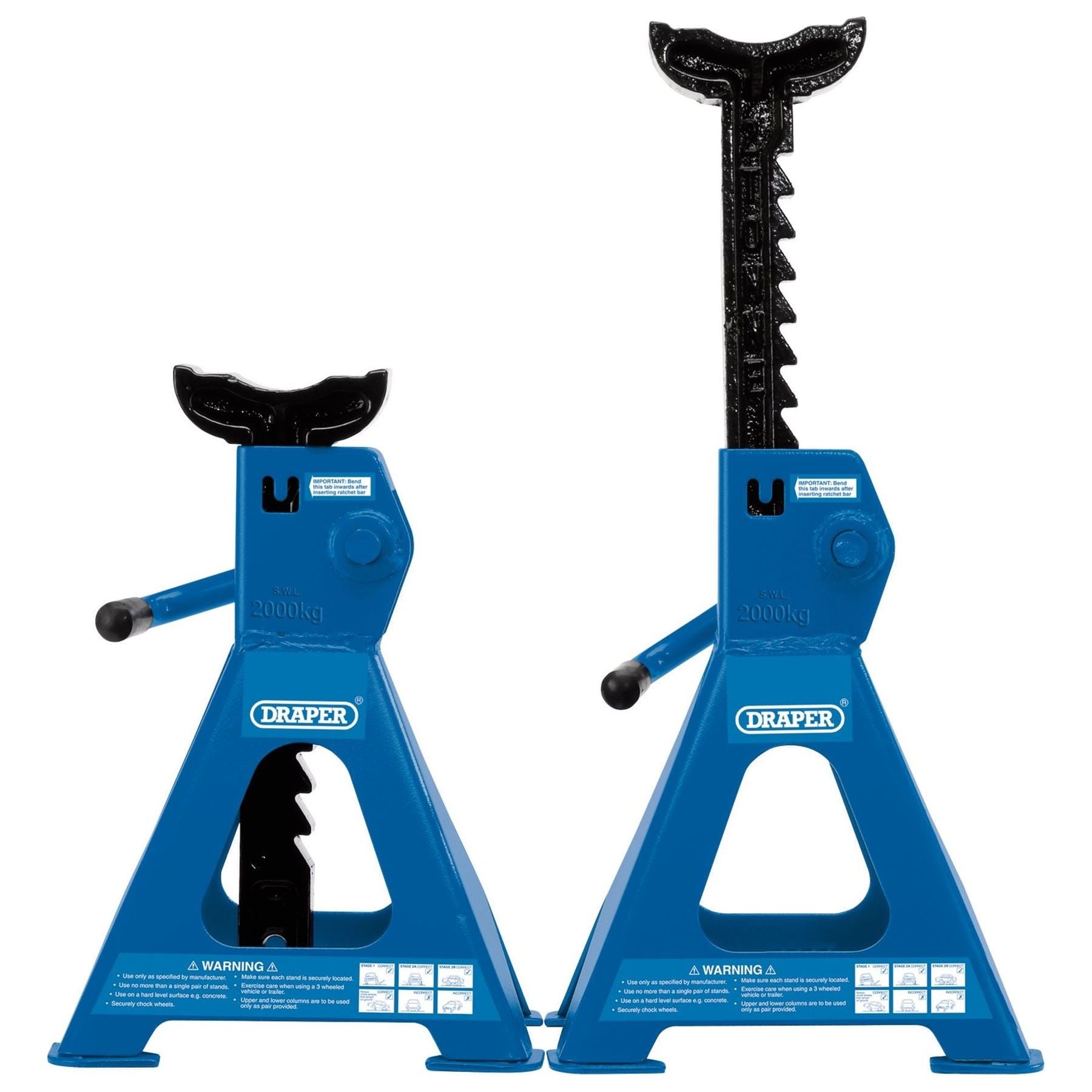 Ratchet - type action. Large saddle (36 x 85mm). Display carton.SpecificationsMinimum height 277mmMaximum height 435mmCapacity (max. per stand) 2000kg (S.W.L.)Capacity...