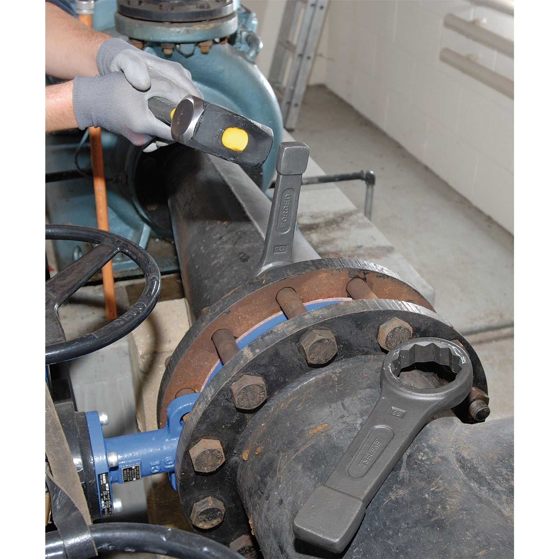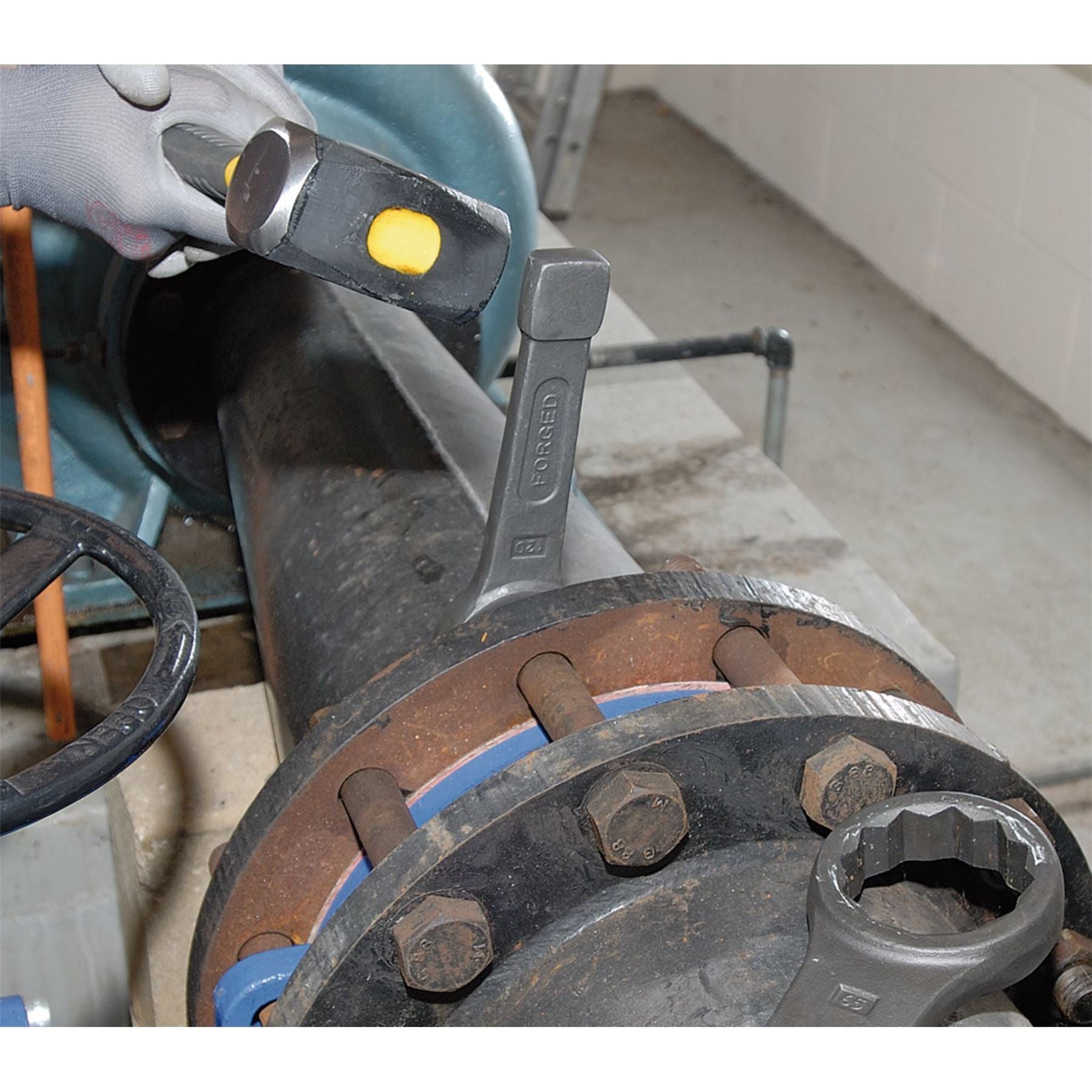 Flat pattern spanners with striking end. Forged from good quality carbon steel, hardened, tempered with black phosphate finish. Length +/...