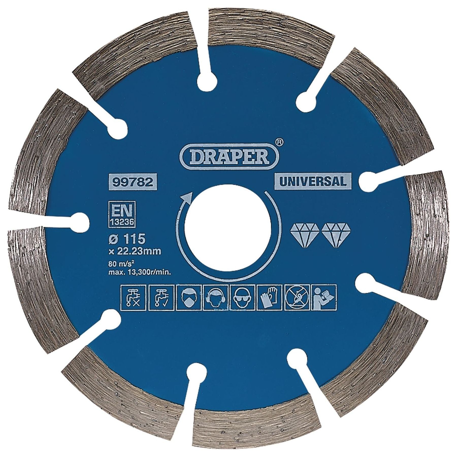 Hardened and tempered diamond blade with segmented rim for a faster cut. General purpose blade for use on concrete, bricks,...