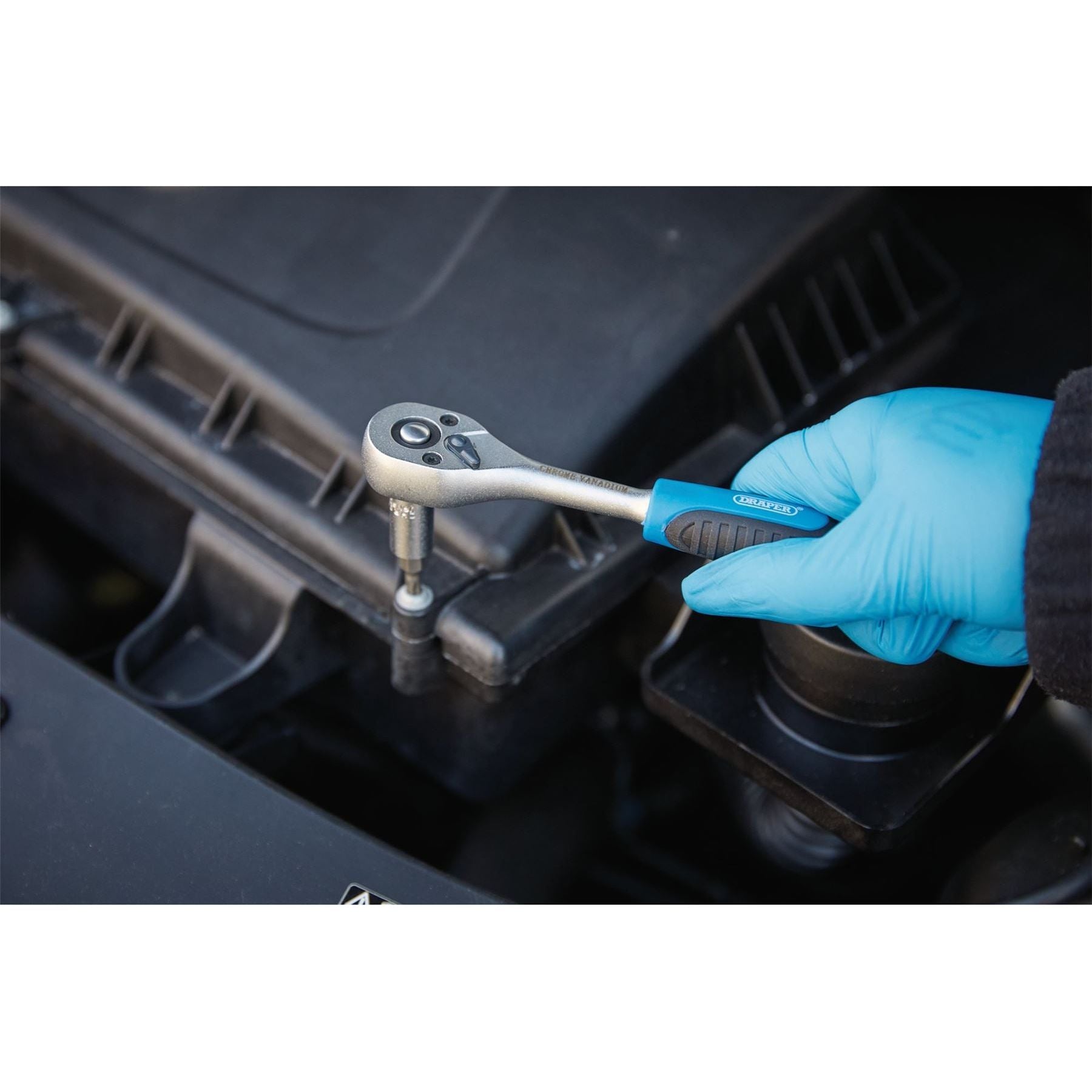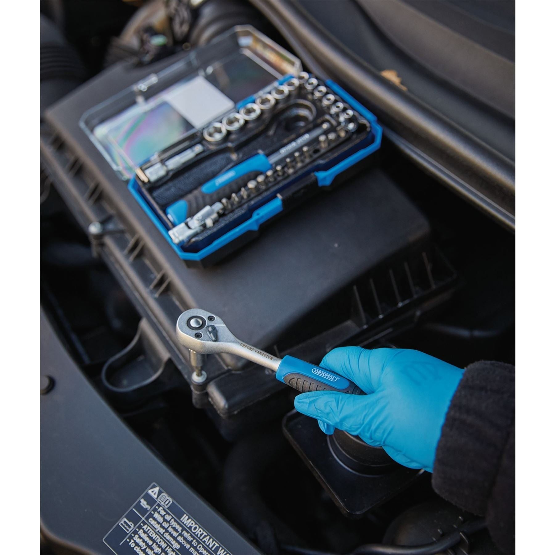This 1/4" square drive socket set includes a 146mm 72-tooth reversible quick-release ratchet, plus a selection of sockets, screwdriver bits and hex keys. All of the tools in this set are manufactured from chrome vanadium steel. The 6-point sockets and extension bar have a knurled finish for extra grip. The ratchet and spinner both have a soft grip for added comfort during prolonged use. Supplied inside a sturdy plastic storage case.