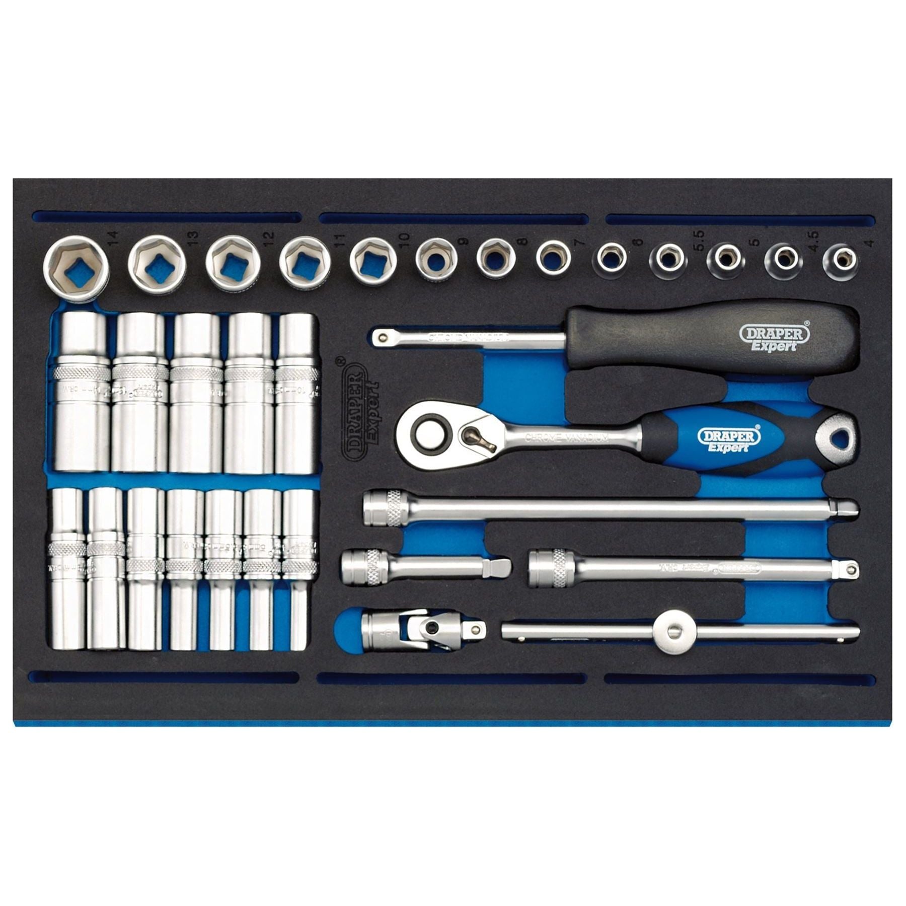 Draper Socket Set in 1/4 Drawer EVA Insert Tray, 1/4"(32 Piece) 63532