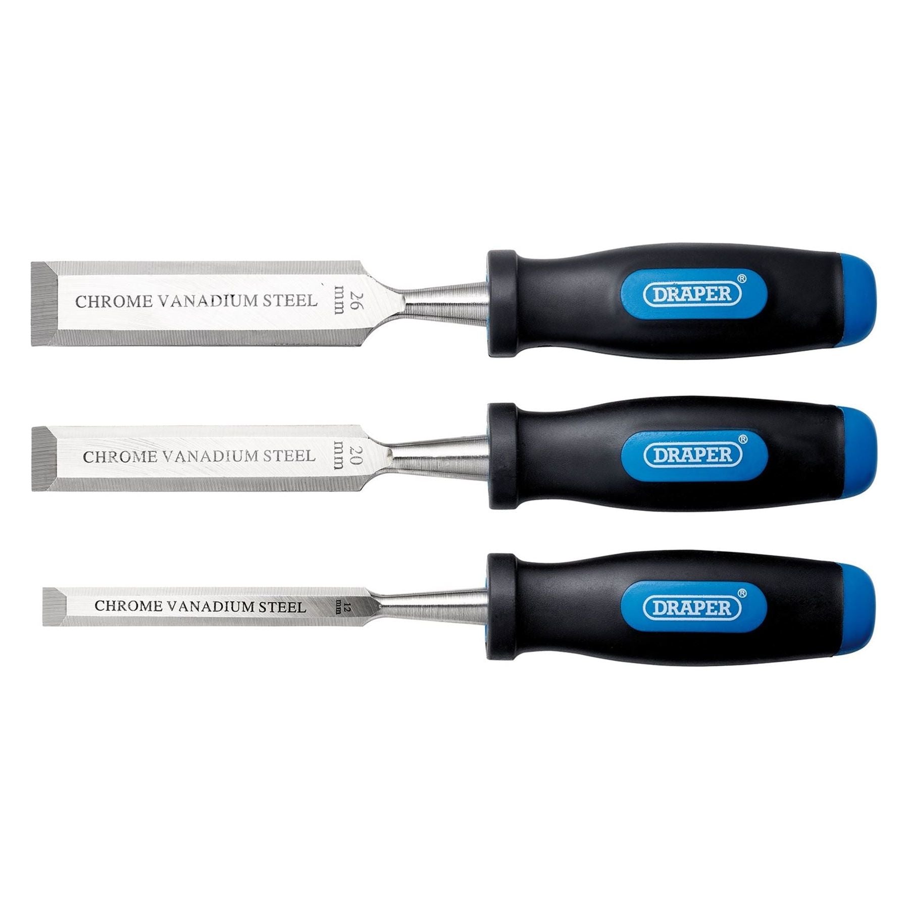Draper Soft Grip Bevel Edge Wood Chisel Set (3 Piece)