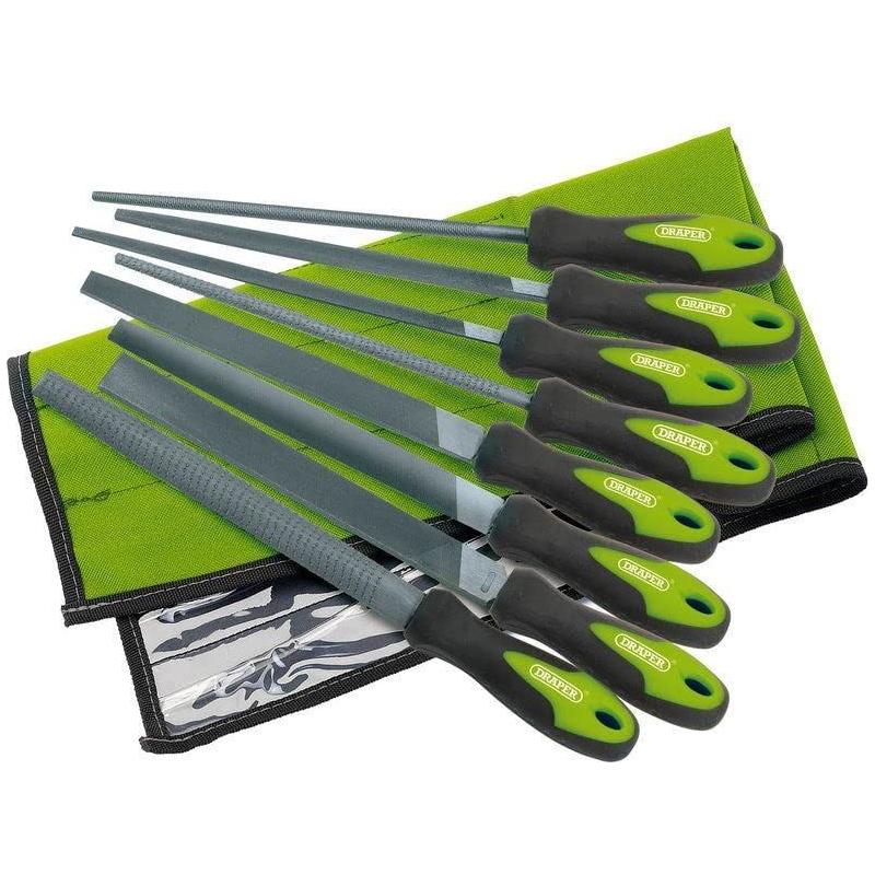 Draper Soft Grip Engineers File and Rasp Set, 200mm, Green (8 Piece) 04461
