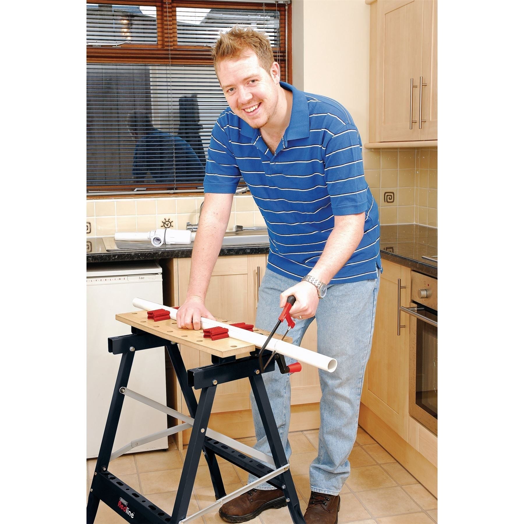Shaped soft grip handle for user comfort with blade tensioner. Supplied with blade. Display packed.