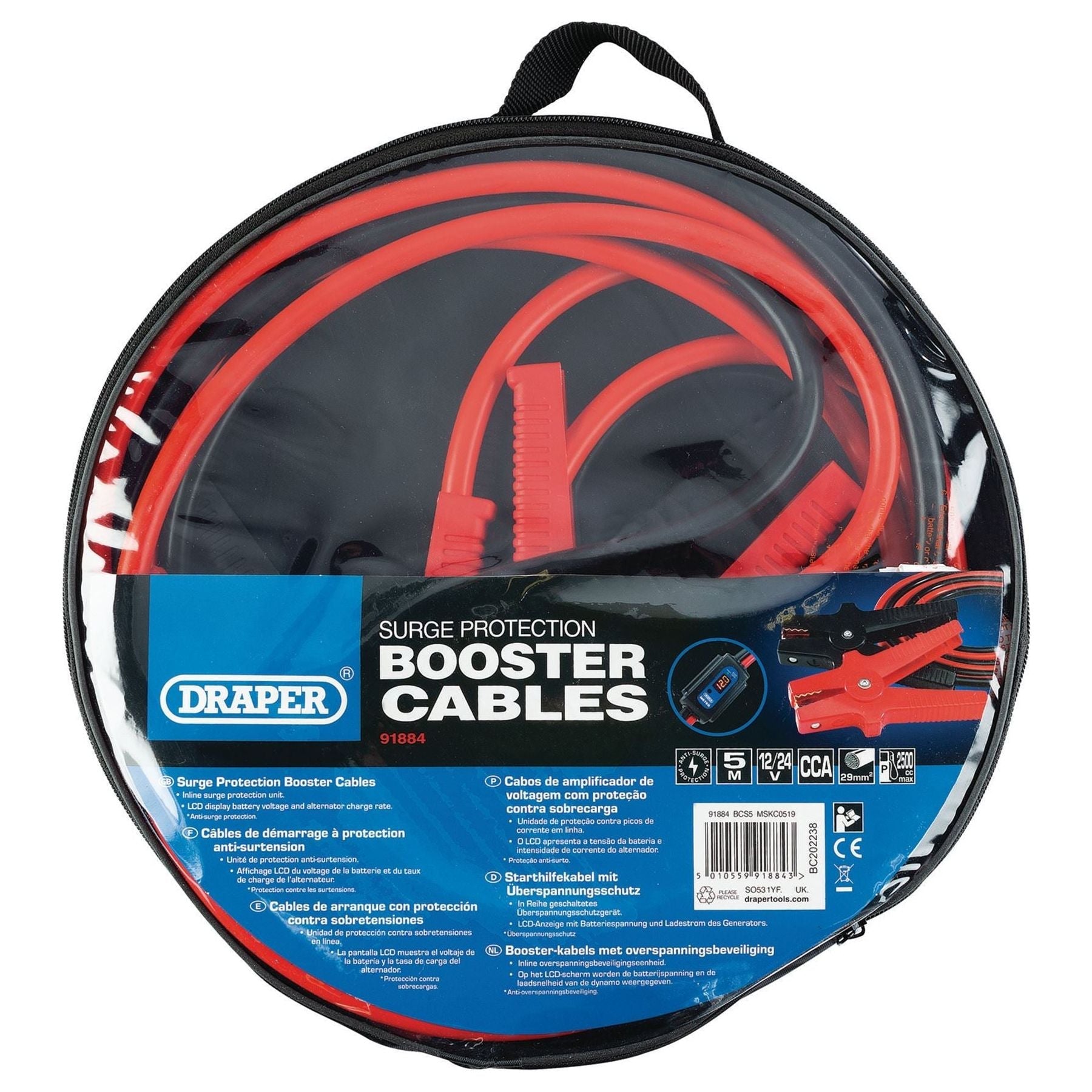Draper Surge Protection Booster Cables, 5m x 29mm² 91884