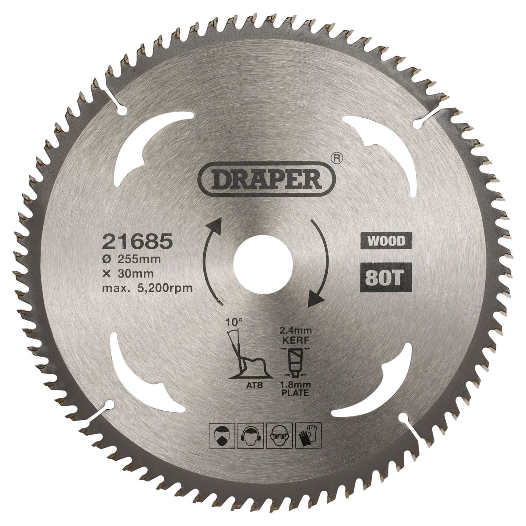 Draper TCT Circular Saw Blade for Wood, 255 x 30mm, 80T 21685