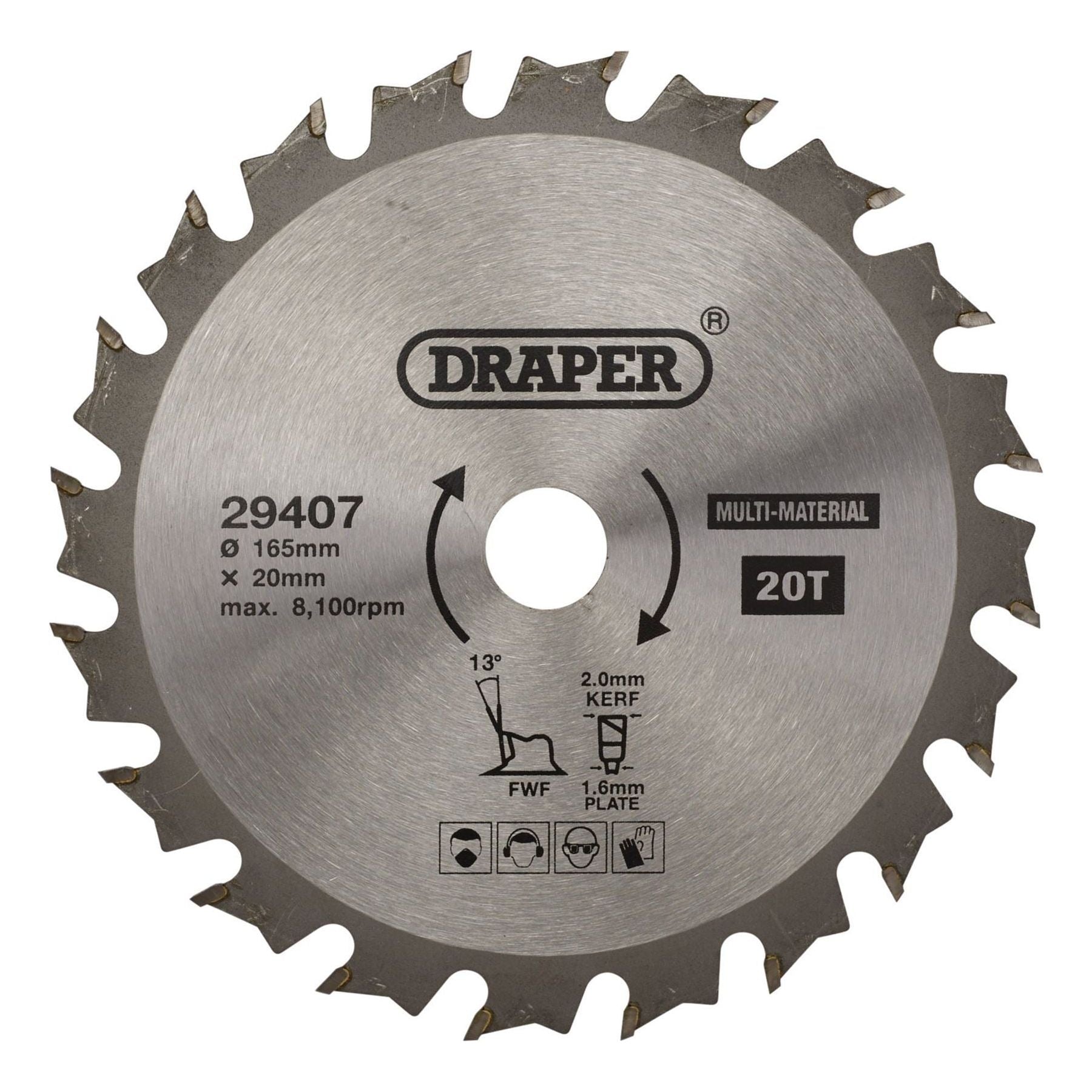 Draper TCT Multi-Purpose Circular Saw Blade, 165 x 20mm, 20T 29407