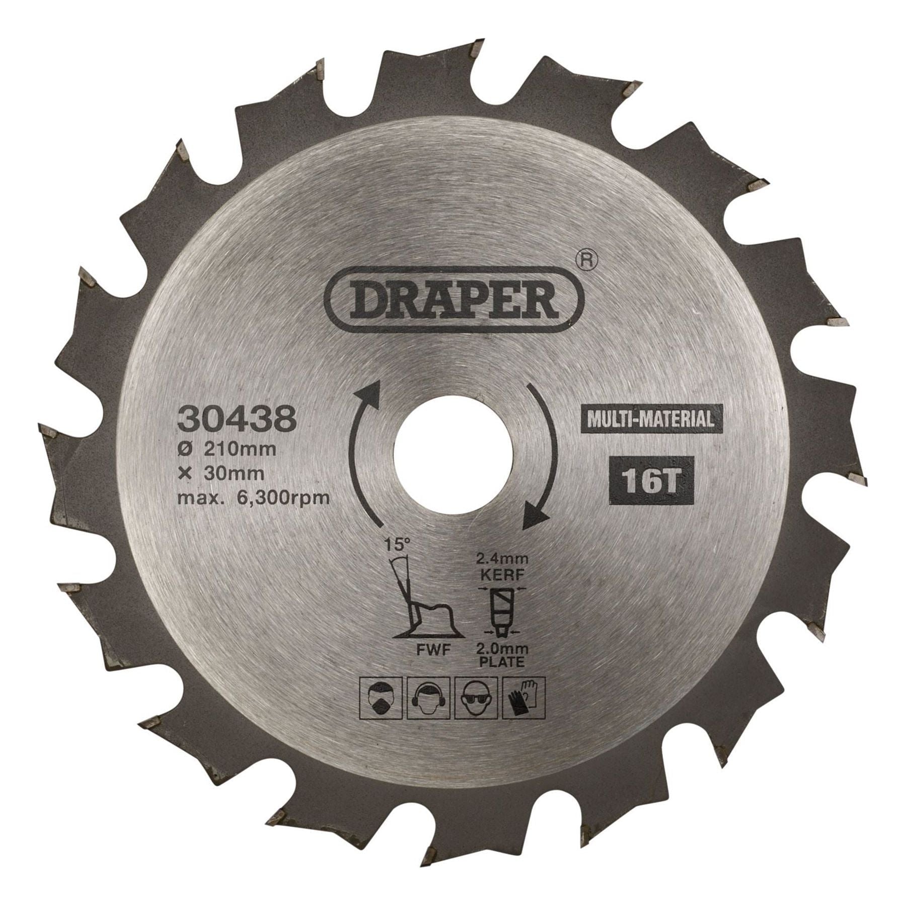 Draper TCT Multi-Purpose Circular Saw Blade, 210 x 30mm, 16T 30438