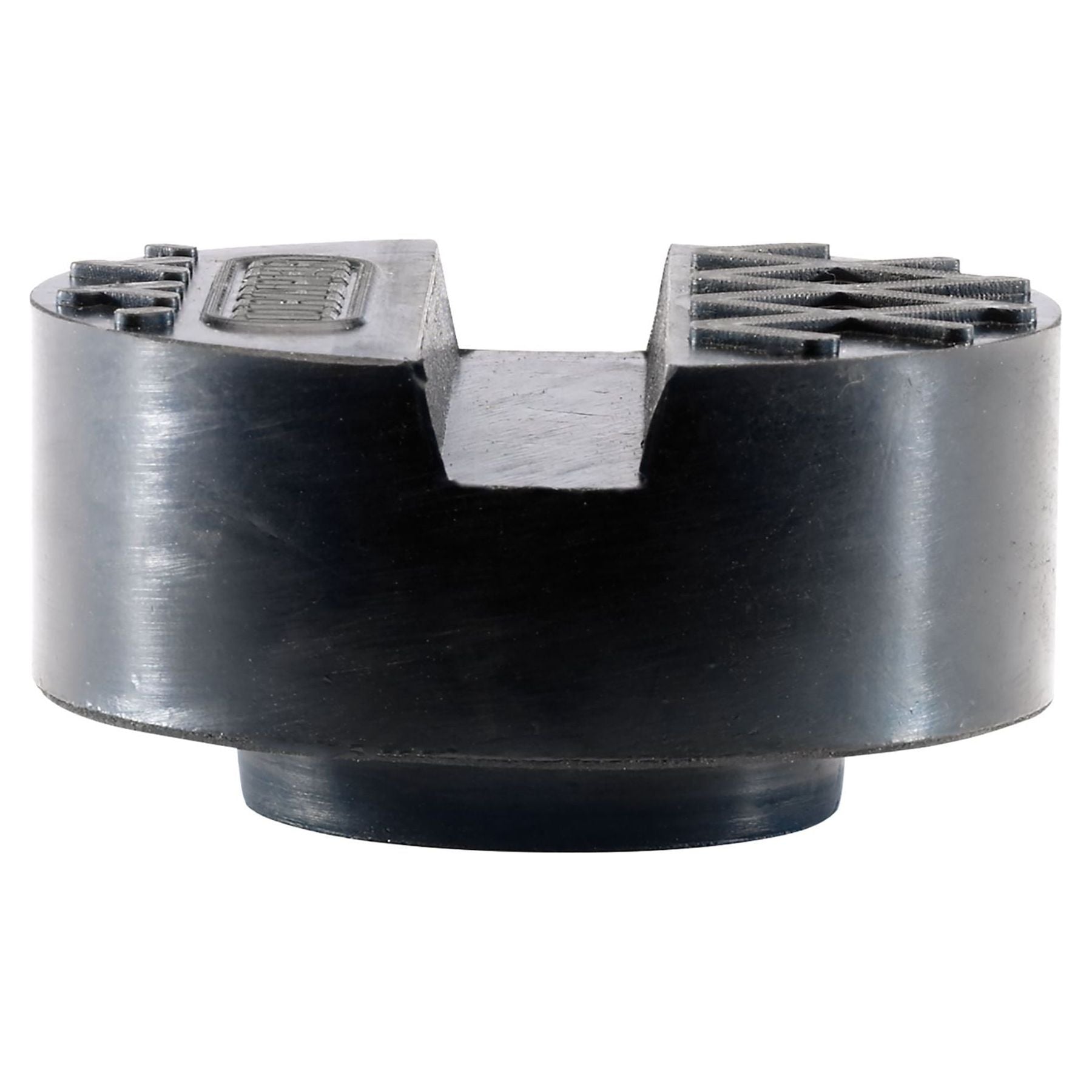 Chamfered base design for compact light - duty trolley jacks. Designed to avert damage to the sill and underside of a vehicle when in use. Made from durable and robust rubber. The slotted rubber feature enables the pad to be used on car sills whilst stopping the sills from collapsing under pressure. For use with trolley jacks with 38 - 55mm diameter saddles.
