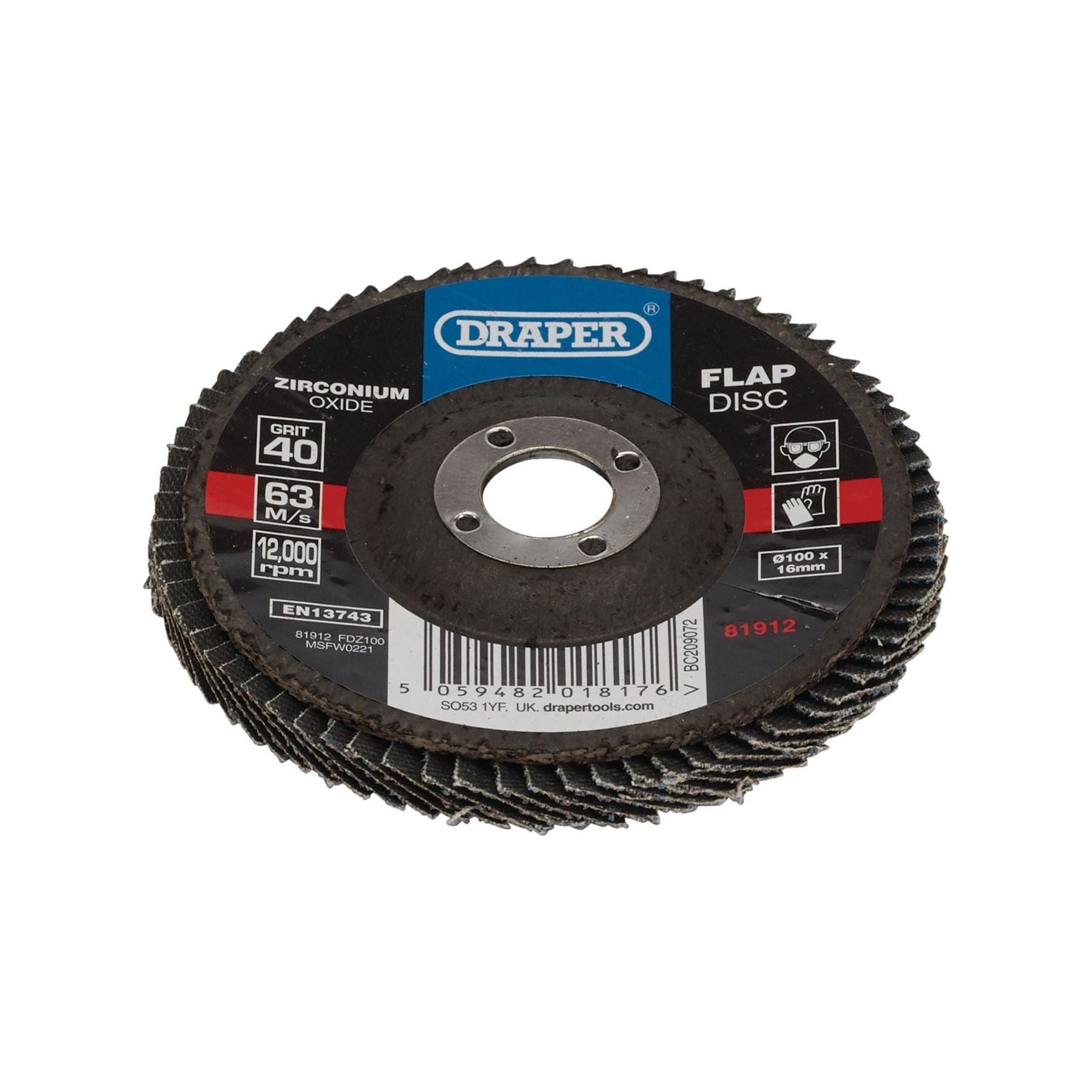 Draper Zirconium Oxide Flap Disc, 100 x 16mm, 40 Grit 81912