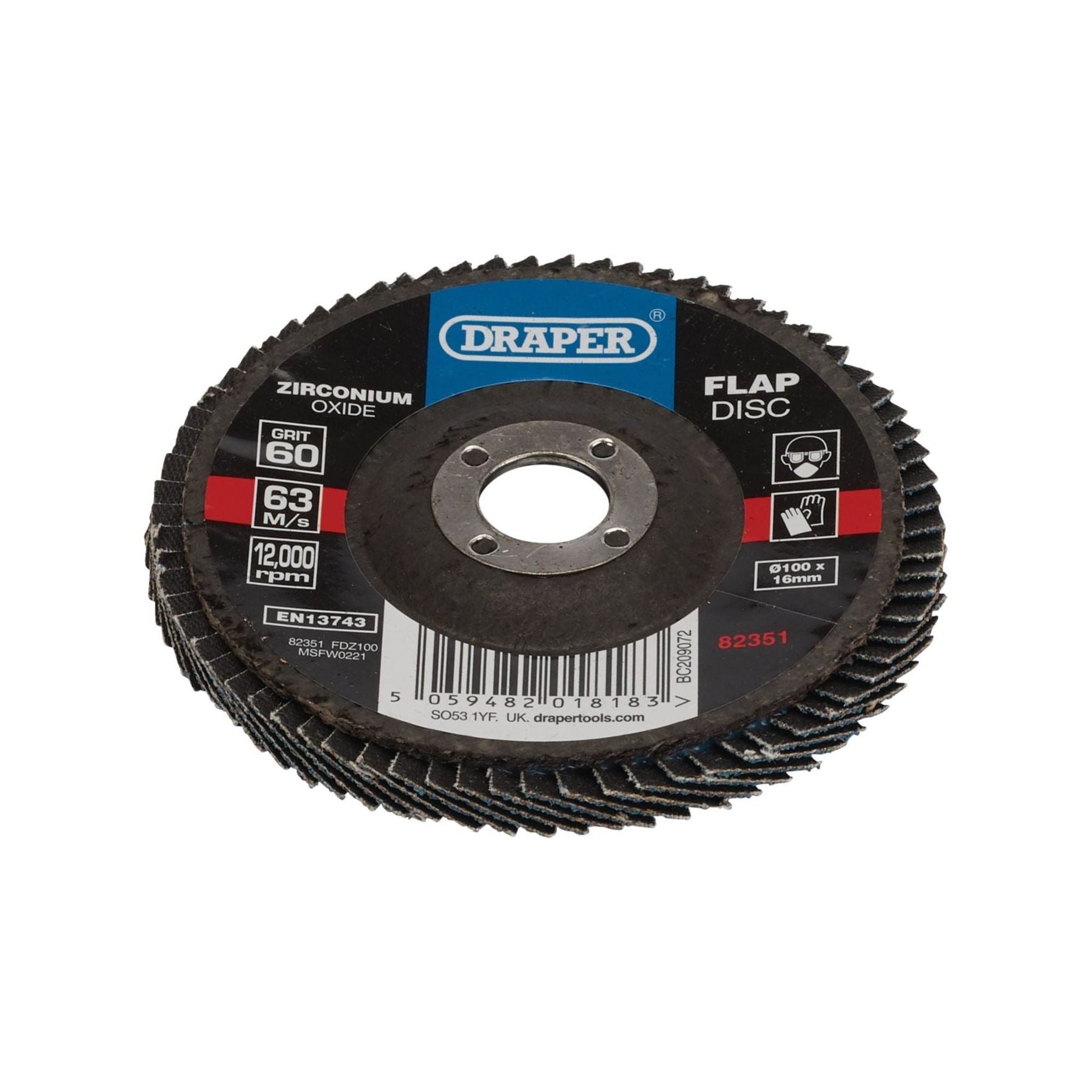 Draper Zirconium Oxide Flap Disc, 100 x 16mm, 60 Grit 82351