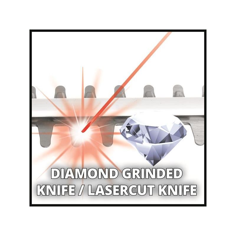 The Einhell GC-CH 1855/1 Li-Solo Hedge Trimmer is ideal for the trimming of hedges, shrubs and bushes on large grounds and allotments where there is no connection to the electric power grid. Its durable metal gearing provides long sevice life. For clean cutting results the blades are made of laser-cut and diamond-ground steel.