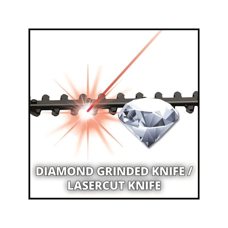 The Einhell GE-HC 18 Li T-Solo High Trimmer & Pruner can be used to trim and cut high hedges and branches easily from the ground. Its metal gearbox provides a long service life, and the OREGON quality blade and OREGON chain ensure clean cutting results. The hedge trimmer knives are made of laser-cut and diamond-ground steel ensure clean cutting results.