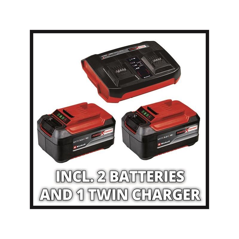 Supplied with: 2 x 18V 5.2Ah Li-ion Batteries and 1 x Power X-Change Twin Charger.