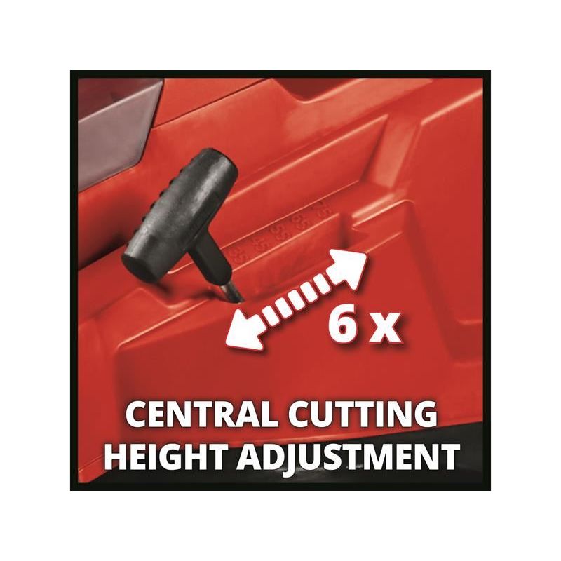 The Einhell RASARRO 36/42 Power X-Change Mower ensures a green, even lawn for your home garden. Recommended for lawns up to 725m². The six-stage central cutting height adjustment allows easy, individual adjustment of the cutting height from 25 to 75mm.