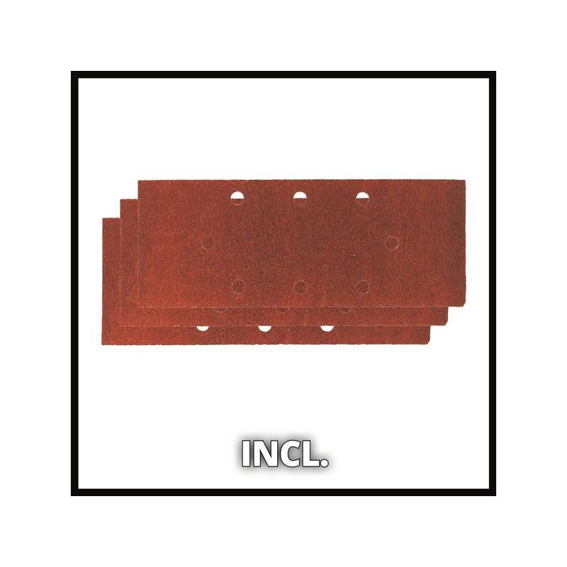 It has a durable aluminium base plate with both micro hook & loop fastening and a clamping device, so the abrasive can be changed quickly. The grip surfaces are equipped with softgrip for a firm and secure grip. The dust collection sack collects any sanding dust produced. There is also the option to connect a vacuum cleaner for maximum cleanliness on the work surface. Delivery includes three sandpapers, so you can start your project immediately.