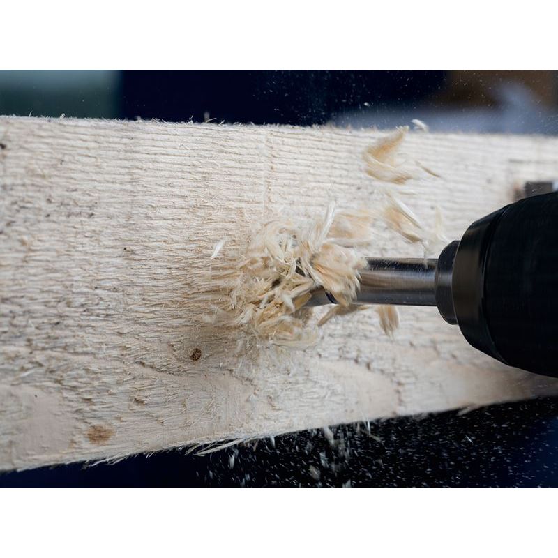 Each bit in the Blue Groove Power range has a self-feeding tip which helps to pull it through materials, as well as three cutting edges which enhance chip removal for a fast, clean hole.