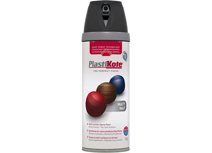 The PlastiKote Twist & Spray Premium Matt Paint gives an enhanced, consistent coverage. The easy spray technology provides added control to make spray painting easier, faster and cleaner. Each coat is ultra-smooth, providing flawless coverage that dries quickly to a tough, durable finish.