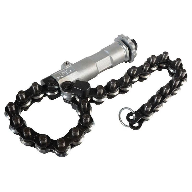 The Ridgid 238-P Powered Soil Pipe Cutter cuts cast iron soil pipe quickly and easily in tight spaces. It is designed to cut up to 200mm (8in) soil pipe when driven by an impact driver (minimum 340Nm torque) or 100mm (4in) with the included ratchet.