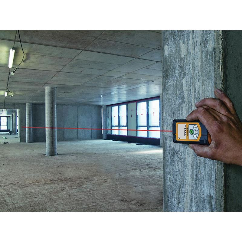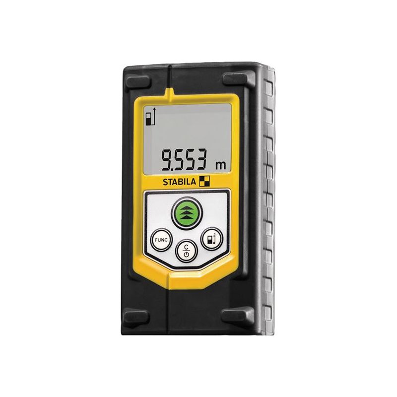 The Stabila LD 320 Laser Distancer is a compact measuring device with easy to operate measuring function. Including: length, area, volume, tracking (continuous measurement), Pythagoras with 2 or 3 measuring points and min/max tracking. With a large, backlit screen and large readout making it easy to read in any environment. Its impact-resistant housing with shock absorbing soft grip casing provide excellent durability for the worksite.