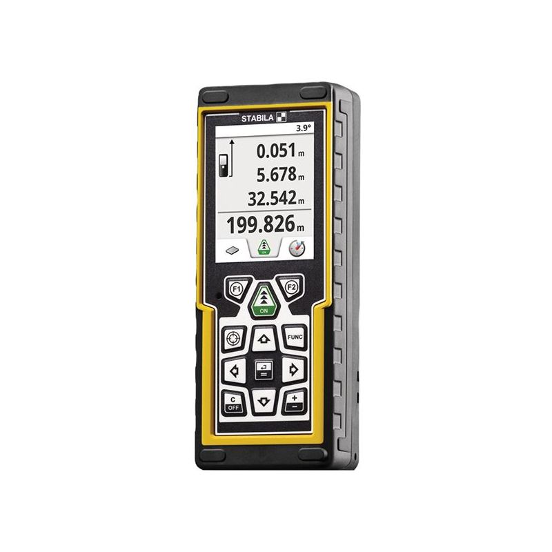 The Stabila LD 520 Laser Distancer is a compact measuring device with easy to operate measuring functions. Including: length, area, volume, timer, calculator, indirect distance, inclination, triangular area measurement, continuous measurement, indirect height measurement, inclined objects, trapezoidal measurement, elevation profile measurement and stake-out function. It also has a memory function that stores and recalls the previous 30 measurements.