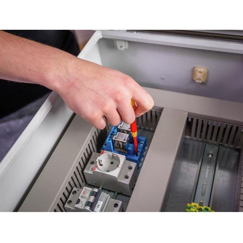 The Wiha PicoFinish® Fine VDE Screwdrivers come with a high quality Chrome vanadium steel blade, through hardened with a black-finish. Insulation is moulded directly onto blade. Individually tested at 10,000 V AC and approved for 1,000 V AC.